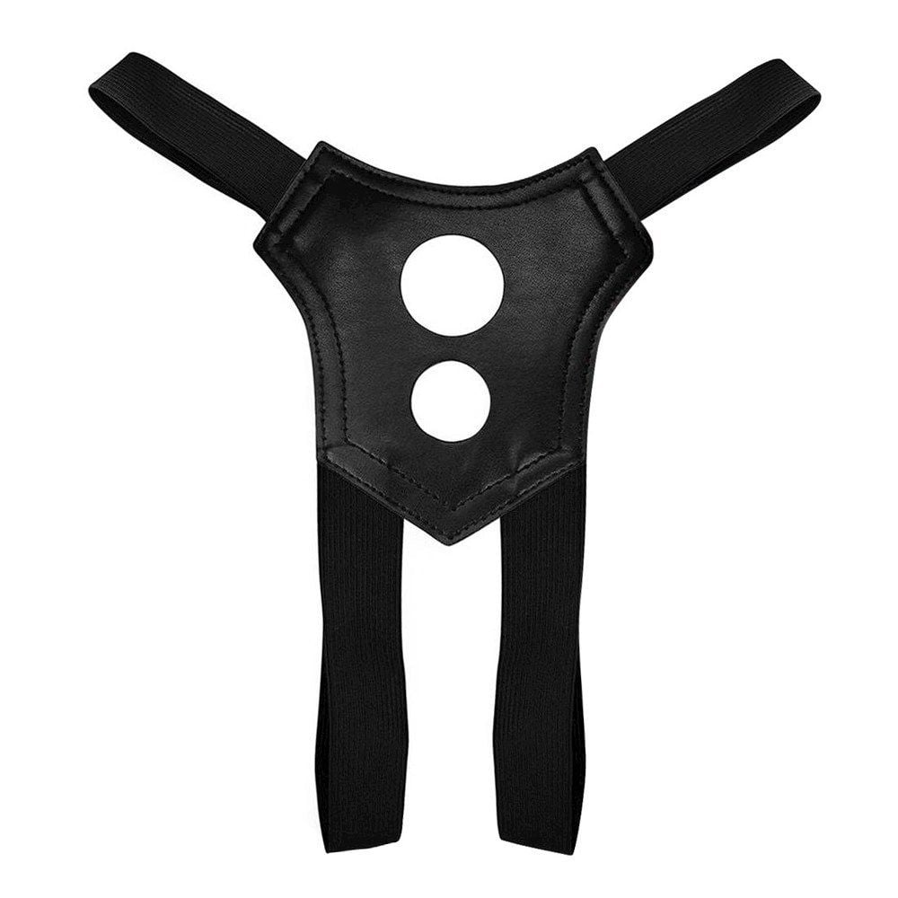 Cinto duplo em couro sintético com elásticos fixos, para utilização com pênis realístico. Orifícios de 3,5 cm e 2,5 cm de diâmetro. Obs: não acompanha pênis realístico.